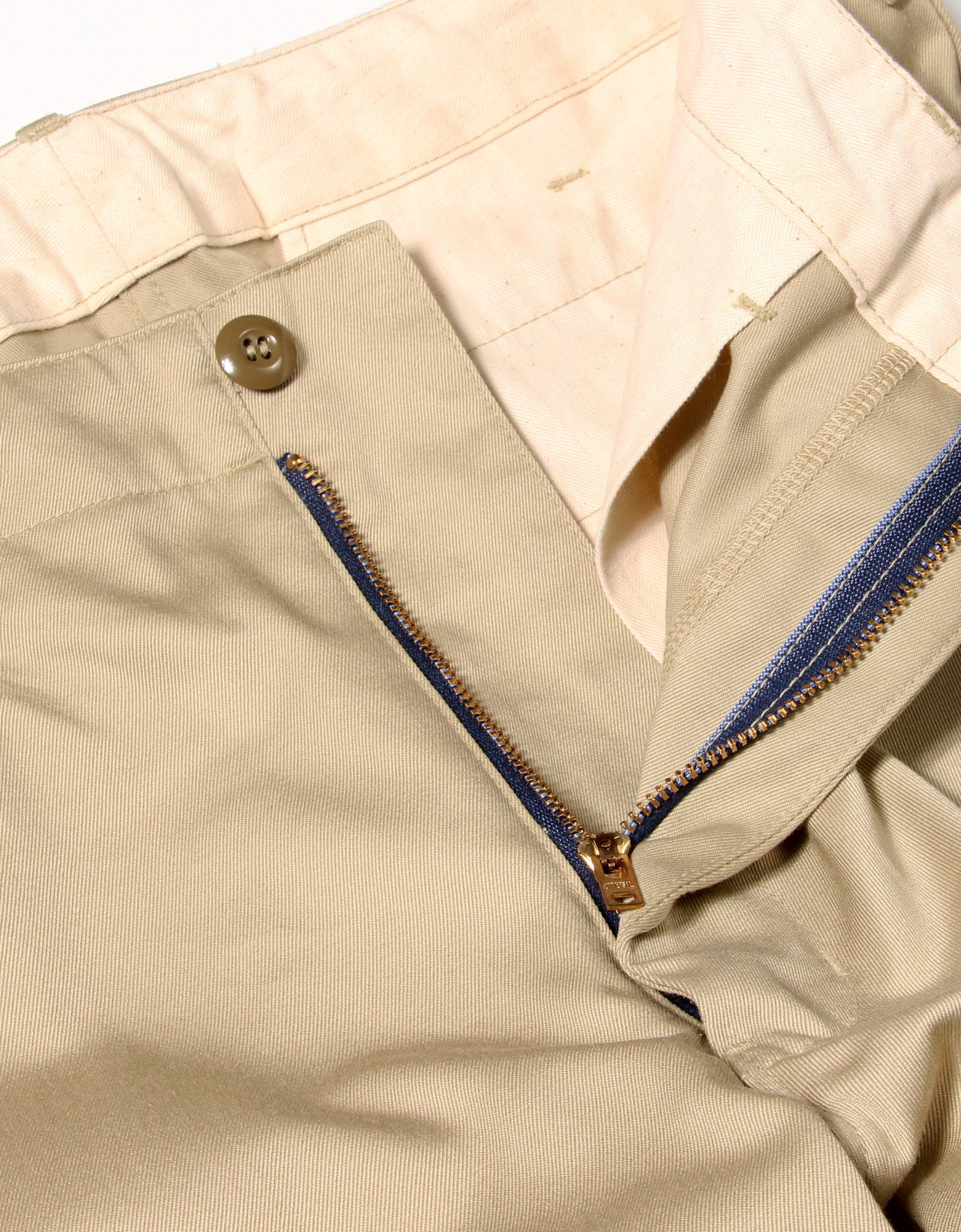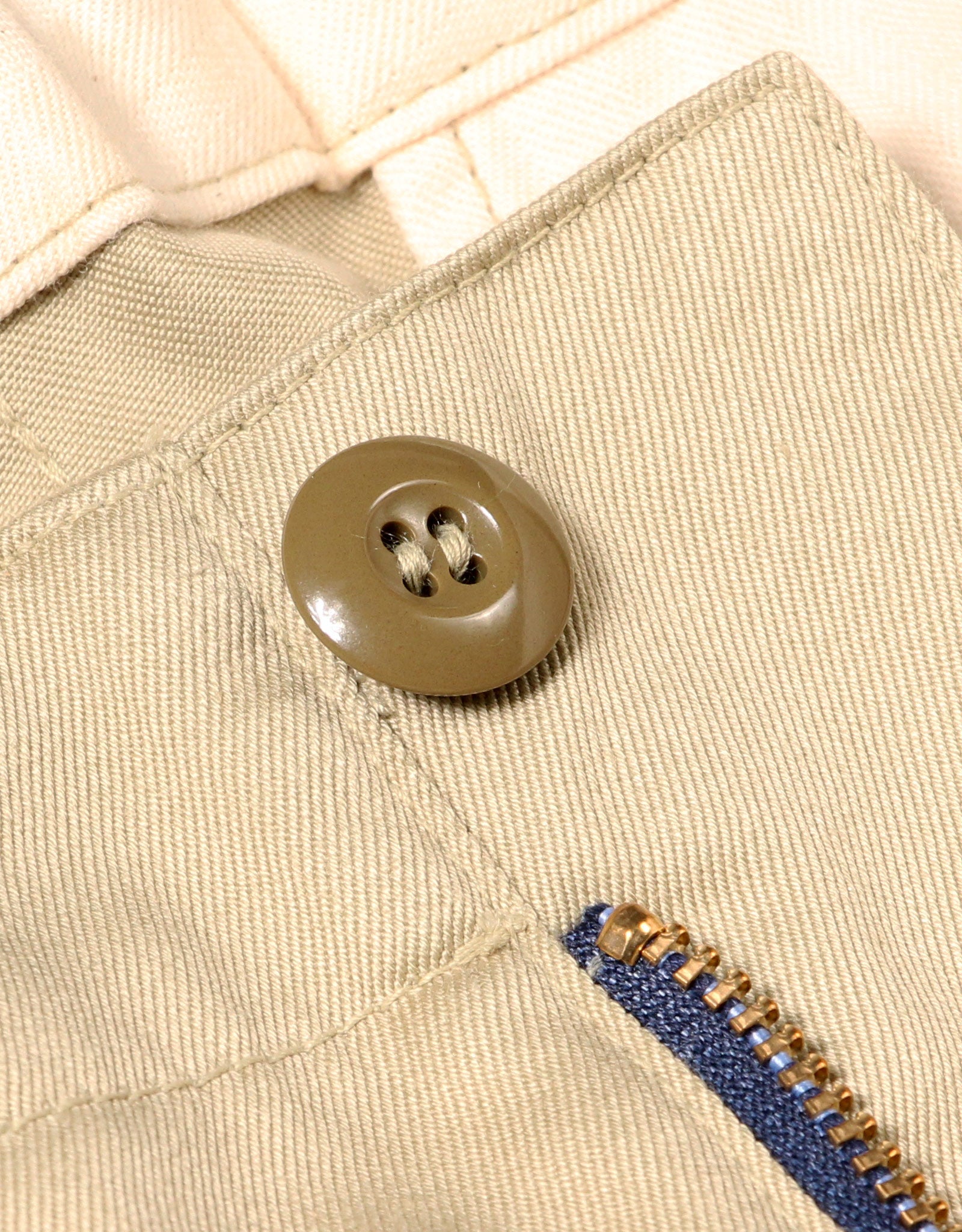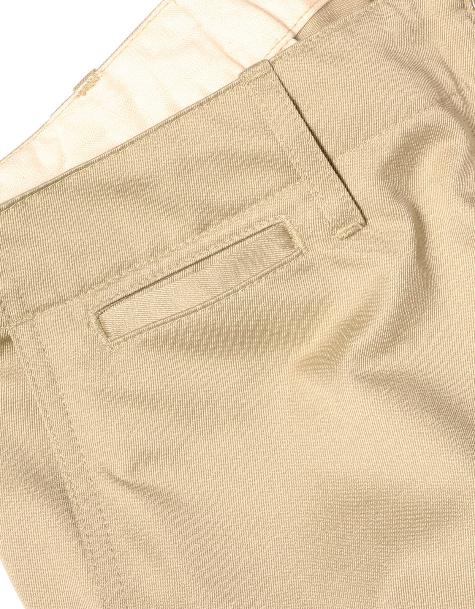 タフでシワになりにくく、程よいハリ感がありながらもコットンの持つナチュラルな風合いを併せ持ったT/Cチノを使用。