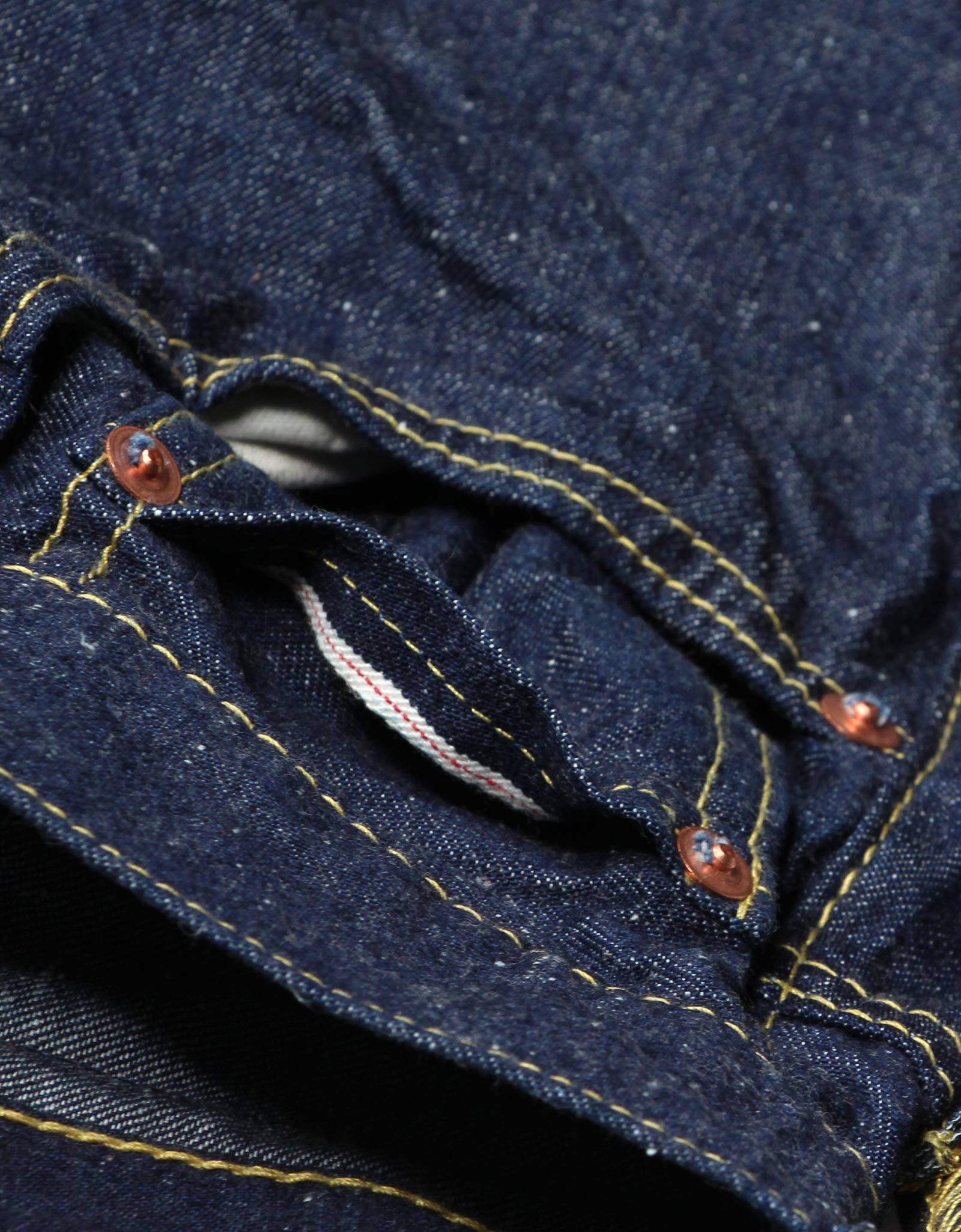 実用的で使いやすいフロントジップフライはクラシカルな雰囲気を演出するユニバーサルジッパーを採用。インディゴの濃淡にちりばめられたネップが、ワークウェアを彷彿とさせる独自の表情を生み出し、通常デニムでは味わえないテイストをお楽しみいただけます。